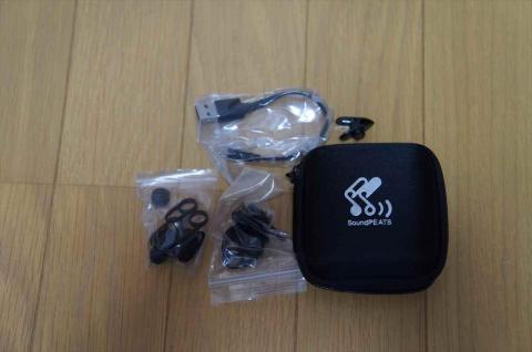 各種イヤーパッド、イヤーフック、ケーブルクリップ、充電用MicroUSB-USBケーブル、ポーチが付属しています。