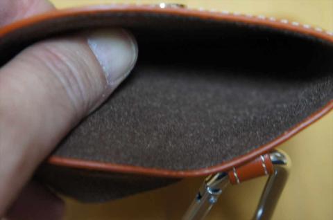 今まで他社製のポーチを使ってました。それも本革で質感の良いものです。しかし、ボタンの裏には不織布のテープだけしか貼ってなかったので、フェルトテープを貼ってます。