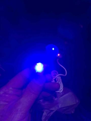 MicroUSB側にはボタンがおあり、これを押すとブルーのLEDが点灯します。ボタンを押している時だけ点灯します。