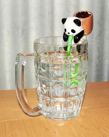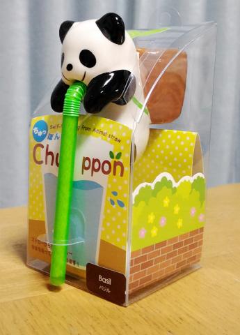 パンダの場合はバジル。ストローから水を吸って土に水をあげてくれます。
