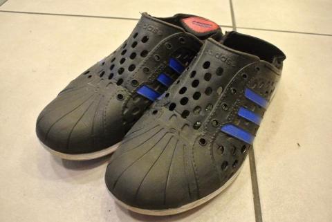 かかとのadidasマークを見せている時には、crocsとは比べ物にならない走りやすさを感じます。