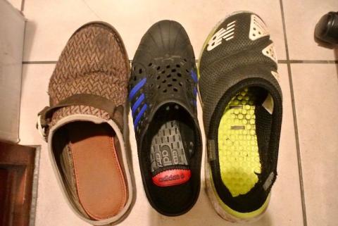 ソールに穴があると、どんどん水が入りますが、すぐに抜けるので、グチョグチョせずに