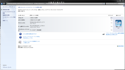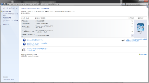 メモリアクセスは同数値、グラフィックは7.4、ハードディスクにいたっては7.9とキャッシュが効いたかなにかの効果でネイティブのWindowsより良い値を出しています。