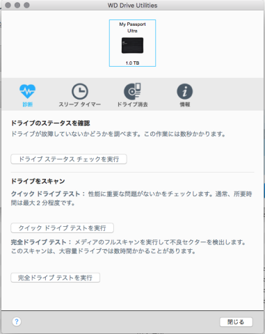 WD Drive UtilitiesはMy Passportの設定、管理、診断を行うユーティリティです。