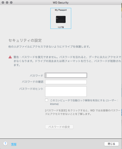 WD SecurityはMy Passportの暗号化を行うセキュリティユーティリティです。
