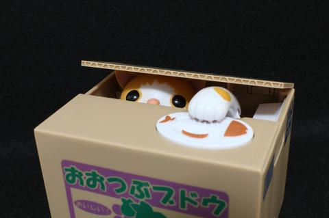猫好きな我が家で、こんな貯金箱あるよーって話してたら、私の誕生日プレゼントにかこつけて、購入したようです。