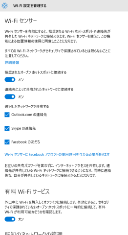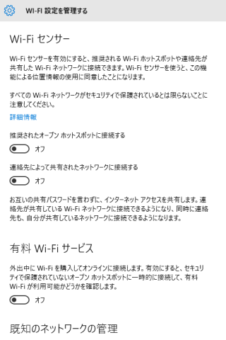 Wi-Fiセンサーが初期値は以下のようになっており、あちこちに勝手に繋ぎにいくとのこと