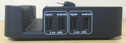 4口それぞれ単体で使う場合の最大出力は2.4A。