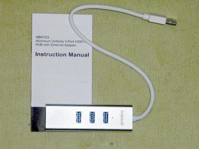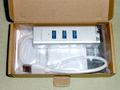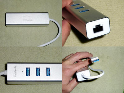 こちらのUSB-HUB、USB3.0のポートが3つに加え、LANポートが付いています。