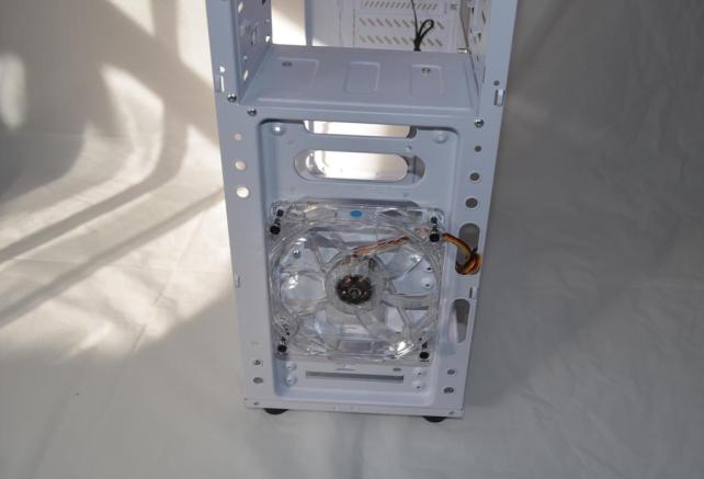 リアパネルには120mmファンが標準装備。こちらは光りません。