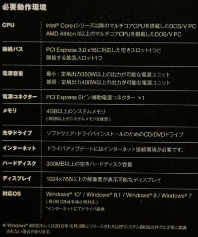 取り付け対象PCスペックについては次の表を参考にしてください。