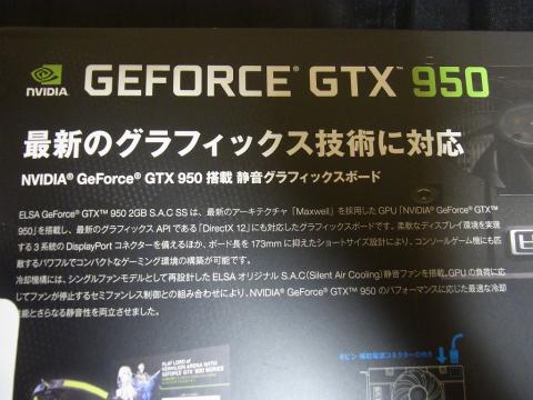 稚拙な駄文しか書けない私ですが、ELSA社製 GeForce GTX 950 2GB S.A.C SS LoVAを