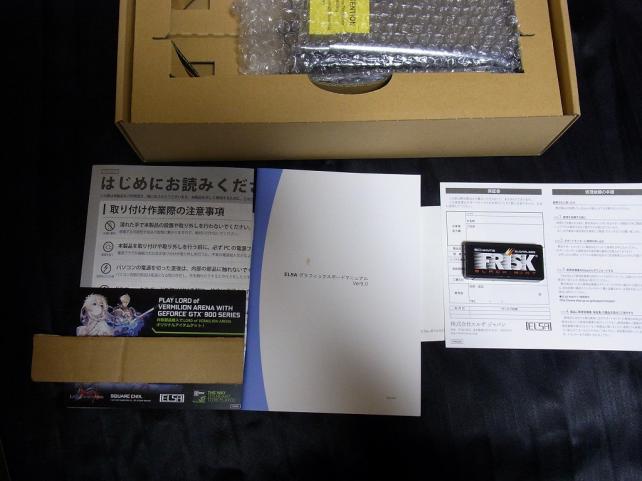 エアパッキンの中に帯電防止袋に包まれたELSA GeForce GTX 950 2GB S.A.C SS LoVA