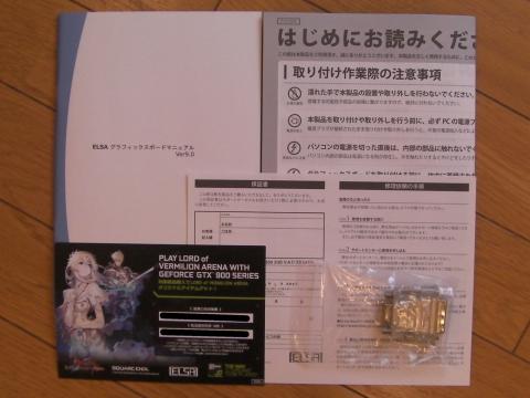 インストールガイド、ユーザーマニュアルはWindows XPからWindows 7まで対応のものでした。Windows 8、Windows 10に対応したインストールガイド、ユーザーマニュアルはELSAの公式サイトでダウンロード(マニュアルダウンロード | 株式会社 エルザ ジャパン)できます。ドライバのCD等は付属していないので、ELSAまたはNVIDIAのサイトでダウンロードする必要があります。またELSAのサイトで、GPU管理ソフトウェアがダウンロードできます。