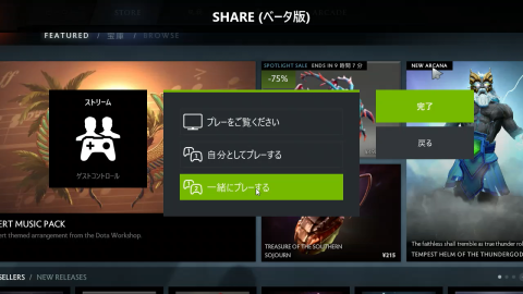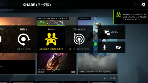 まずはローカルでテストします。デスクトップPC(※以後ホストPCと表記します)で起動したDota 2をノートPC(以後ゲストPCと表記します)でプレイします。