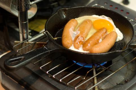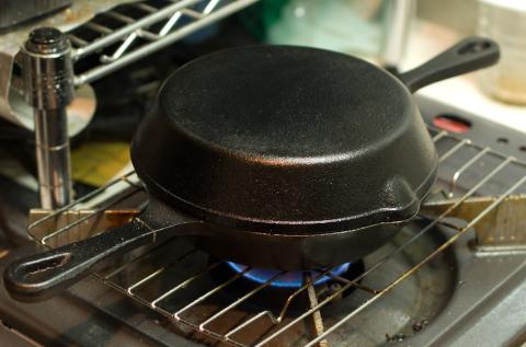 スキレットとは鋳造製の無骨なフライパンで、ダッチオーブンのフライパン版みたいな感じ。