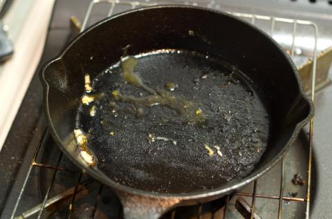 ニトリのスキレットは洗剤で十分洗った後に、食用油を入れて5分程加熱すればOKだそうです。