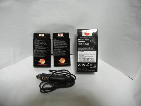 EN-EL12互換バッテリーパック×2個と充電器+シガーソケットがセットになっています。