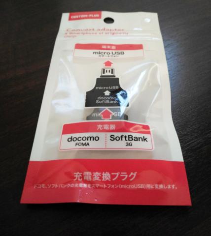 FOMA端子をmicroUSB端子へ変換するアダプタ。ガラケー持ちの我が家ではFOMA用充電器も積んでいるので、こちらの商品でスマホ充電環境を作ることが出来ます。