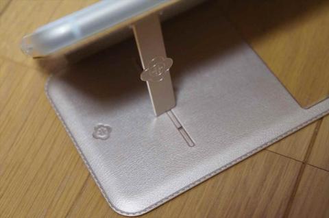 前面にあったボタンのような溝にスタンドを引っ掛けて使うので、滑りにくくしてあります。