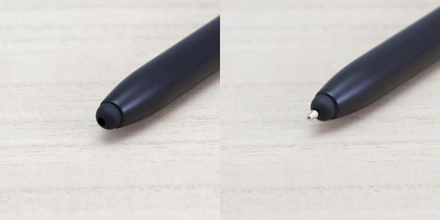 同じポジションでボールペンとタッチペンを使えるのは大変使い易くて良い反面、タッチペンは空洞式で真ん中に穴が空いている状態なのですから、耐久性が気になるところです。