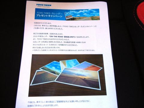 以前、応募した「TOYO TIRES カレンダープレゼントキャンペーン」で当選したようです。