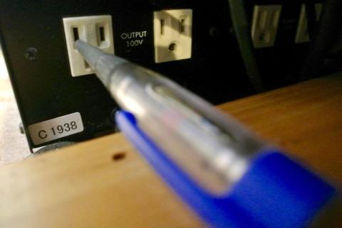 ダウントランスの極性は確かなので、左側にある長い穴にアース側ブレードを挿入します。