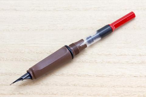 胴軸を締め直してやる事でカートリッジが首軸に刺さり、インクが充填されます。