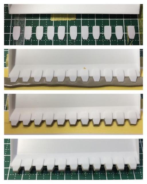 等間隔で貼り付けた後は、エポキシパテで裏打ちをして形成をしてあります。