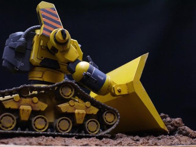 下半身はガンタンクの兵器っぽい感じを削り取り、重機のようなデザインに変更しました。