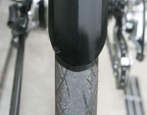 黒いのは、樹脂のシートステイブリッジ/フォーク用ワッシャー、厚みはくぼんでいるところで約5mm