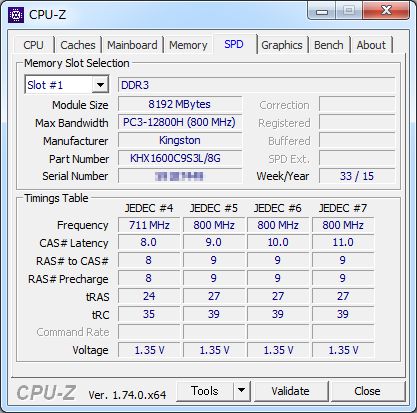 DDR3-1333 CL8-8-8 1.35V or 1.5V