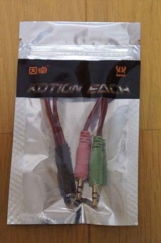 パソコンで使う場合やマイクを使う場合は、このアダプタを使います。