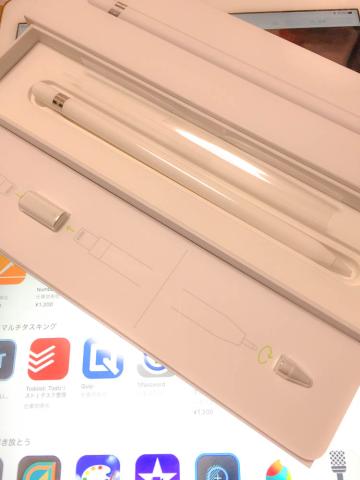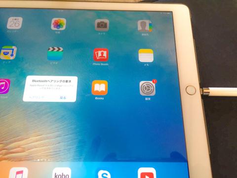 早速ペアリング。後ろのキャップを外して、ipadproに差し込むと、ペアリングが始まります。あとは、選択していくだけで接続できるお手軽さ。