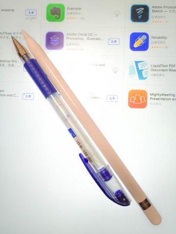 実際にいつも使用しているボールペンと比較してみました。キャップを後ろにつけた状態でもappleのペンのほうが長いのですが、手にした感じは先端が重いとか、後ろが重いとかという感じはせず、鉛筆に近い感じがしました。赤鉛筆かな?あれに近い感じが・・・