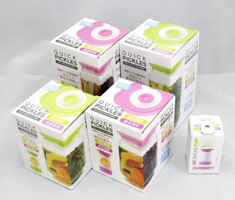 本セットは、湿気に弱い食品保存の容器として利用するほか、減圧することであさ漬けやピクルスなどを短時間で作る事も出来ます。