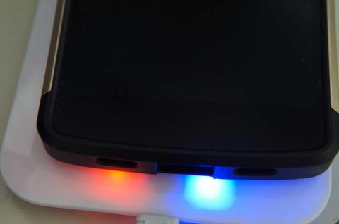 Nexus5もワイヤレス充電に対応しています。結構分厚いケースを装着していますが、難なく充電ができます。