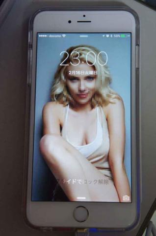 iPhone6 Plusと充電器がほぼ同じ大きさで、充電器が見えませんが、問題なく充電が行われています。