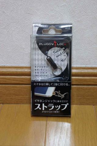 オウルテックのPluggy Lockという商品で、イヤホンジャックに装着することで、ストラップホールになります。