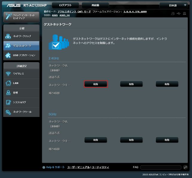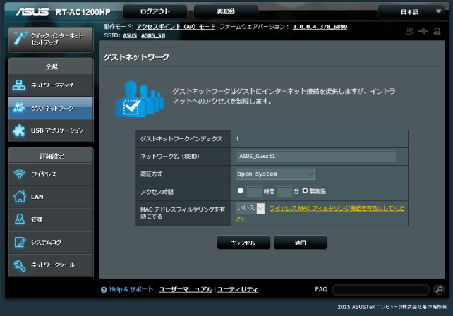 認証方式の選択や説明しやすいSSID名に変更したり時間等を設定できます
