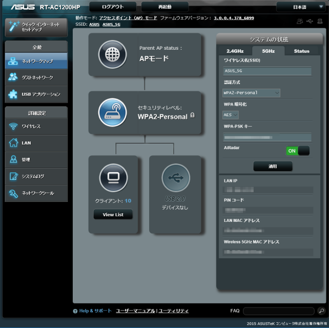 WPA2-PersonalとMACアドレスフィルタリングしか使わない