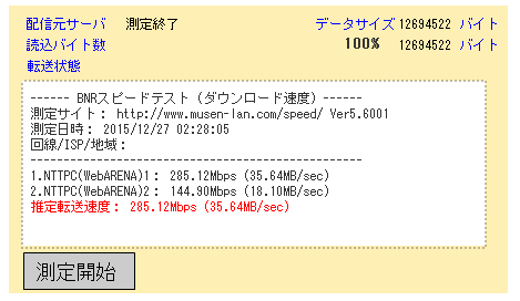 推定転送速度: 285.12Mbps (35.64MB/sec)