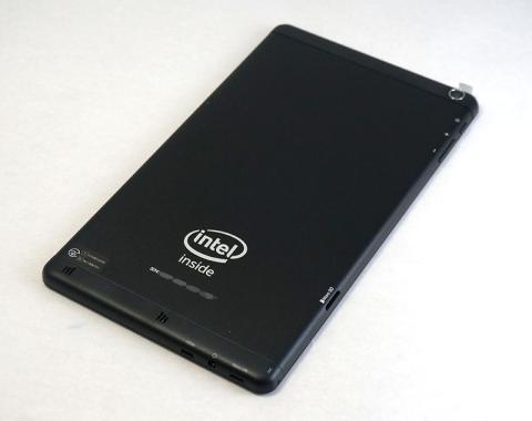 このクラスのタブレットは縦に持ったときに右上に音量ボタンや電源ボタン、上にUSBコネクタ等が来るものが多いのだが、このモデルは左上にボタン類、下にコネクタ類だ。まあ逆さにしても問題ないのだが、背面のインテルロゴが逆になる。