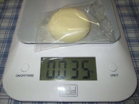 包装ごと重さを計測してみたところ 35g と出ましたので、適正量ですね。