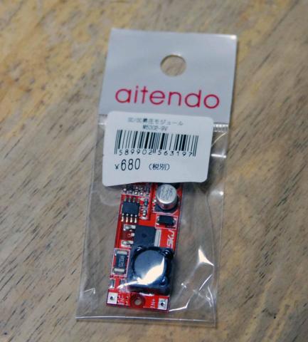 入力電圧:3〜9Vで出力電圧:9V との事なので、USBの電源を9Vに持ち上げようと思い購入して見ました