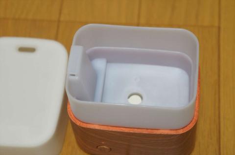 タンクにアロマオイルを入れると、左の小さい穴から香りだけが噴出されます。