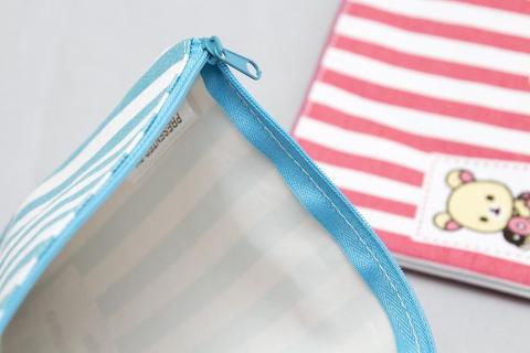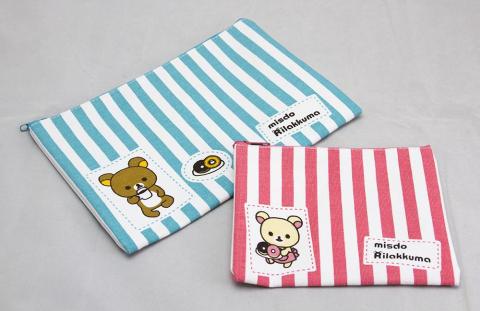 続いて本命のミスド リラックマ グッズは三点で、まずペアポーチはフェイス柄かストライプ柄かを選ぶことが出来ます。