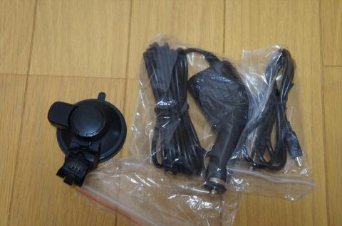シガーソケット電源と、MiniUSB-USBケーブルが付属しています。