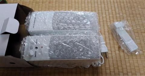 いかにもショップブランドPCに標準で付属してそうな音の悪そうなスピーカー(^^; 白いし、USB電源ではなくAC電源なので結構古めのものだと思われます。一応ヘッドホン端子が付いているのが嬉しいか・・・100円均一ではアンプ内蔵スピーカーは買えないのでそれよりは価値があるかと。