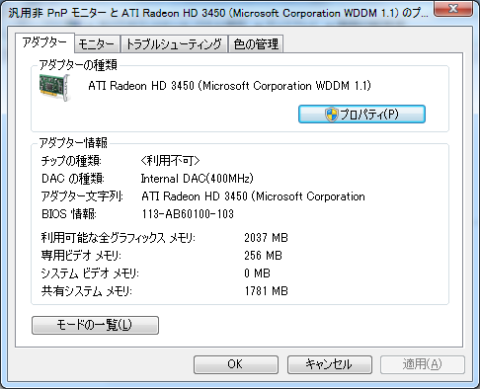 っと思って動作確認をしたら、RADEON HD3450だったorz